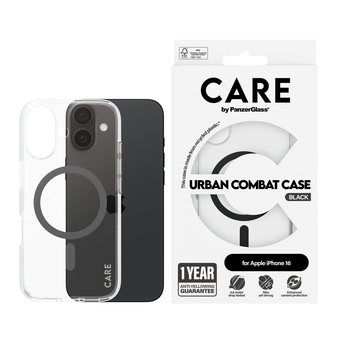 CARE BY PANZERGLASS Flagship Hard MagSafe Case for iPhone 16 - Clear/Black